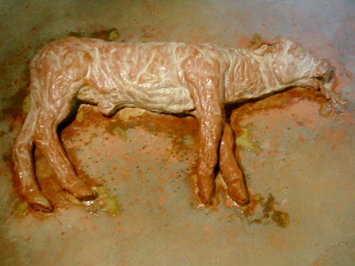 een laboratorium opstelling van dierembryo's/ foetussen van ongebakken