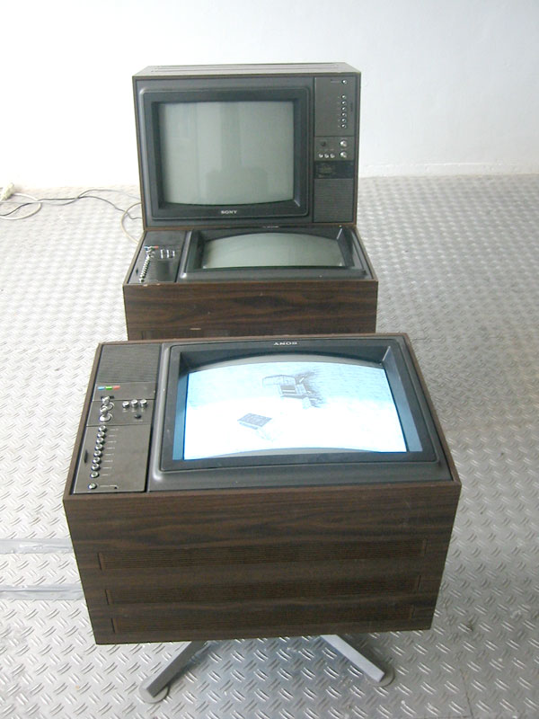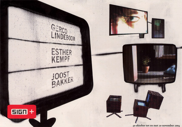 Joost Bakker maakt een installatie van TV's waarbij hij ze groepeert tot meubels. Het beeldscherm fungeert ook als zitting. Op de monitor TV is een animatieloop te zien. Karakteristiek voor de animaties zijn de metamorfoses die ontstaan vanuit het tekenen. Het einde is tevens het begin. Het meubel zelf, als tekening, figureert ook in het filmpje. Van tekening, naar animatie, naar object, van installatie terug naar tekening. De metamorfoses strekken zich op een heldere manier ook uit m.b.t. disciplines , verschijningsvormen en de daaraan verbonden karaktertrekken (van statische tekening naar bewegende animatie van platte afbeelding naar ruimtelijk object). Zo heeft Bakker ook het testbeeld van de TV vertaald in een glas in lood gebrandschildert raam; hij speelt daarmee met het licht van de monitor en het daglicht. (klassiek en modern) Joost Bakker is in 2004 afgestudeerd aan de Hogeschool voor Kunsten te Arnhem en is onlangs gaan studeren aan het Sandberg Instituut (2e fase) te Amsterdam |