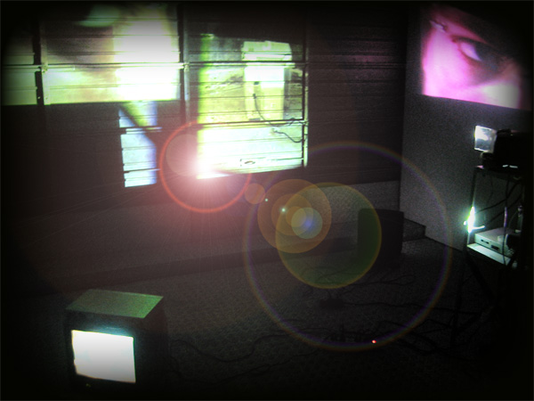genodigde kunstenaars bedienen zich van camera, monitoren, beamers,
