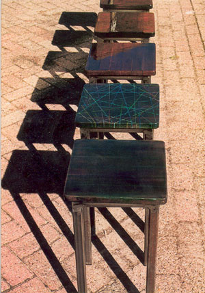'Tabukad': mdf, kleurpotlood, pigment, lak, staal.