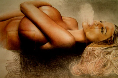 'Camera Lucida' film, foto's. Speelt met identiteit en geschiedenis van zichzelf en van o.a. Lewis Carroll, (schrijver van Alice in Wonderland) en vervlecht deze met elkaar. David O'Kane plaatst zichzelf, terug in de tijd, in het personage van Lewis Caroll. Hij verkleedt zich als zodanig, fotografeert zichzelf in dezelfde houding. Ook verzamelt hij allerlei historisch materiaal zoals b.v. foto's van kinderen gemaakt door Carroll zelf en maakt daarvan een eigen fantasievolle historische interpretatie. (hij suggereert bijvoorbeeld dat Lewis Carrol pedofiele neigingen had) Voor David O'Kane is geschiedenis geen vast onveranderlijk gegeven. In zijn werk plaatst hij zichzelf vaak in een historische context b.v. als 17e eeuws soldaat of in een Dante-achtige setting. David O'Kane is student National College of Art & Design, Dublin Ierland en studeert dit jaar af. |
