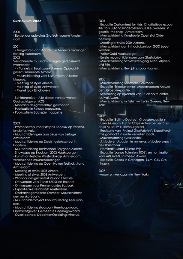 stad zelf tentoonspreid wordt hierdoor zichtbaar in zijn werk. Complex,