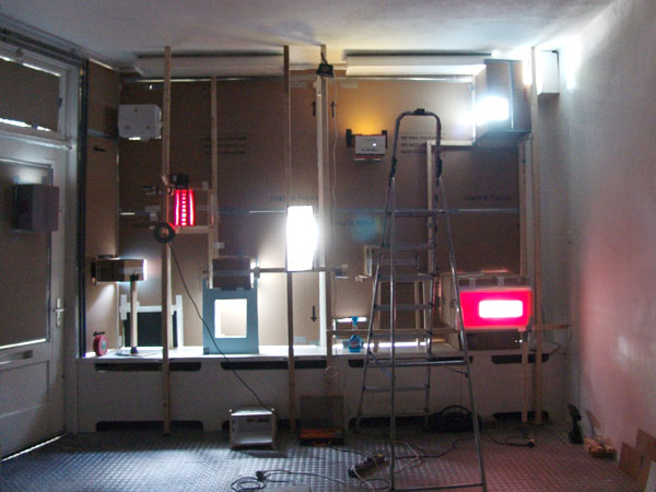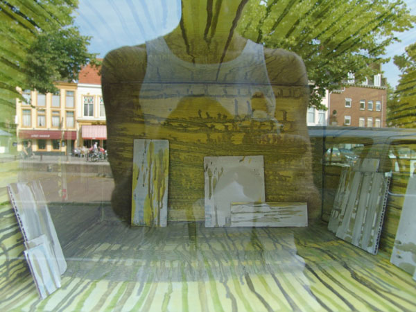 wordt van buitenaf gluurder in een picturale installatie waarbij schilderijen