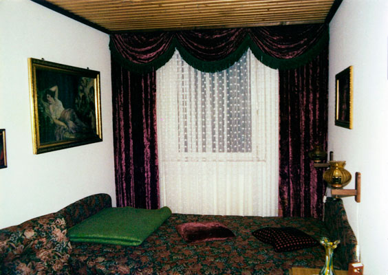 Meike Eggers (1973 Dld.): "Pyjamocracy - a glimmer of you ", focust op amateur footage, en toont de sporen en gevolgen van helden, heersers, iconen en idealen. De installatie combineert een verzameling van historische en hedendaagse amateurfilms en -video's geprojecteerd in één ruimte. Pyjamocracy beschrijft niet alleen de huidige democratisering van beelden en media maar ook het einde van de voormalig eendimensionale en schijnbare betekenisvolle realiteit. (www.meikeeggers.eu) Meike Eggers (1973 Dld.): "Pyjamocracy - a glimmer of you", focuses on amateur footage depicting the traces and effects of heroes, rulers, ideals and icons. The installation combines a collection of historical and contemporary amateur films and videos projected on the walls of a room. Pyjamacracy describes not only the current democratisation of images and media, but also the end of a former one-dimensional and apparently meaningful reality. (www.meikeeggers.eu) |