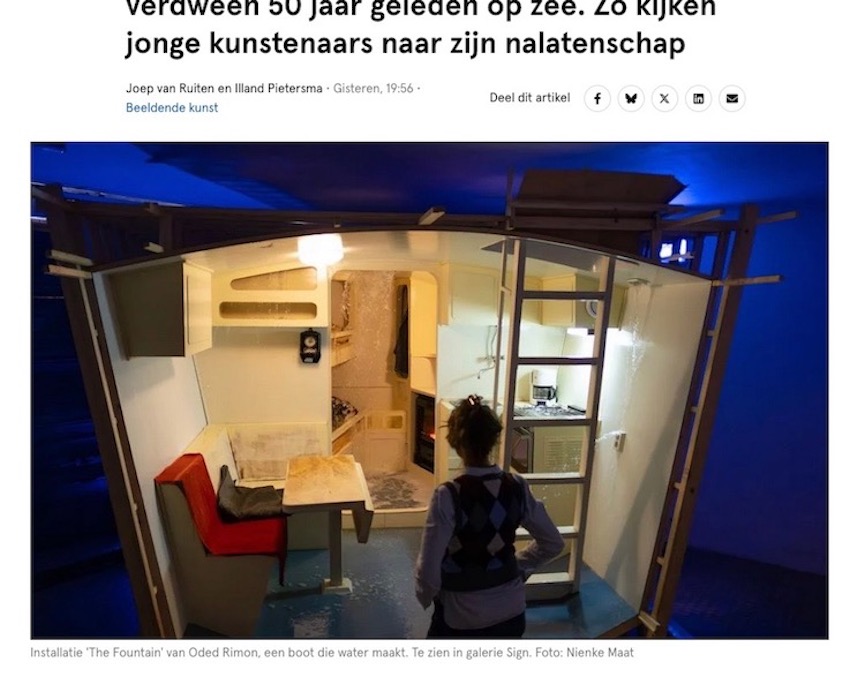 ODED RIMON ( Jeruzalem 1992) , VAV Rietveld, Amsterdam 2018. Lived Space / Temporary Domesticity – Spaces like the boat, kitchen, or other temporary homes as sites for storytelling, reflection, or dreaming. https://www.instagram.com/odedyrimon/, https://burostedelijk.nl/collaborators/oded-rimon/