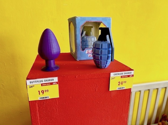 The installation transforms the SIGN into a hyperreal toy store—bright, structured, and meticulously branded. Shelves are stocked with musical instruments modelled after prohibited adult objects: toy guns reimagined as flutes, harmonicas embedded in gag balls, melodicas built into BDSM gas masks, and whistles disguised as cigarettes and butt plugs. Packaging and signage mirror commercial toy aesthetics, creating an uncanny sense of legitimacy. The space plays with contrasts between innocence and taboo, sincerity and satire. It invites visitors into a consumer fantasy where children’s desires are taken at face value, reframing marketing as both a mirror and ampli er of cultural morality.