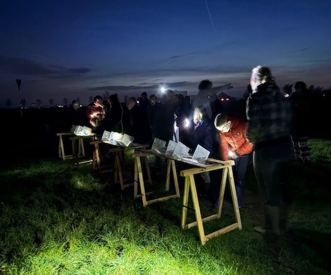 To gain a better understanding of Grasland Ezinge, Wim Warrink conducted numerous experiments with space, time, distance, and the elements of air, water, and earth. Using his homemade (measuring) instruments, light is captured, bent, and refracted, and time is intercepted on this shortest day of the year.