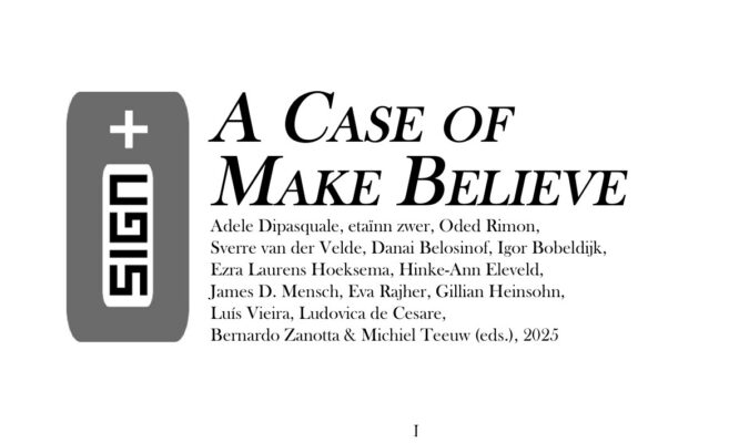 Kom naar de finissage van A CASE OF MAKE BELIEVE bij SIGN, met de lancering van de tentoonstellingspublicatie, met een correspondentie over de tentoonstelling, bijdragen van de kunstenaars en teksten van de werkgroep autofictie.