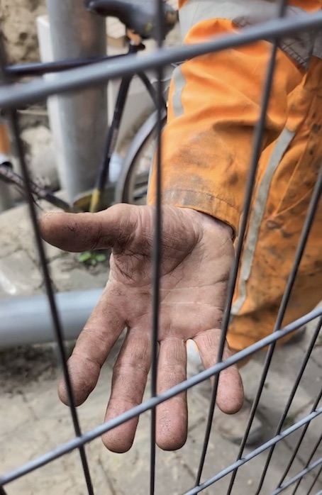 When I would have these conversations with them over the construction fences, I looked at their working clothes, their rough hands, and the safety shoes they were wearing. And then wonder, despite all the technological “advances” that so many people talk about, there are no devices to prevent them from getting injured by moving concrete pipes, relocating cables in a deep sand pit next to huge excavator claws, and cutting plastic pipes with a chainsaw. What an irony!